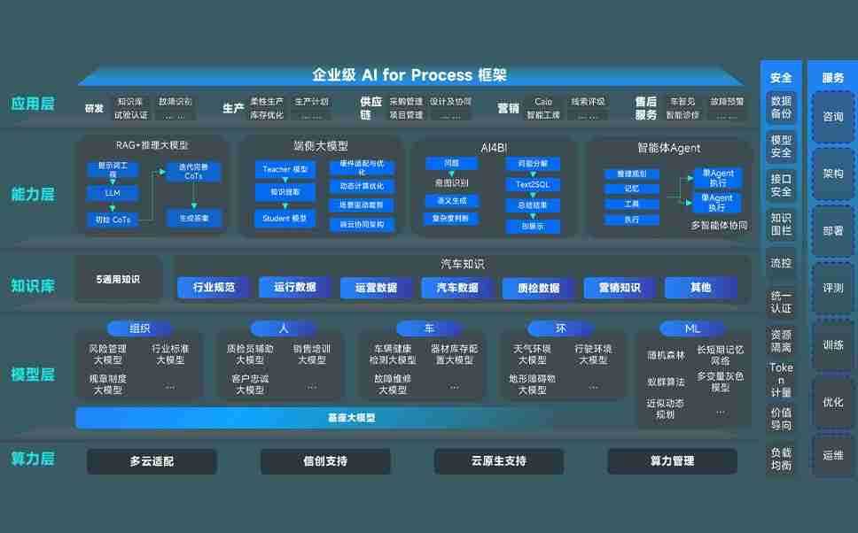 金多宝问学智车解决方案是一套基于AI技术的汽车行业智能化系统,,,覆盖从底层算力到顶层AI应用的全栈方案。。方案由算力层、、、、模型层和应用层组成:算力层,,方案支持多种一体机配置,,,,具备云端灵活部署、、多云适配以及动态优化计算资源的能力;模型层,,,,金多宝问学平台版提供了企业级AI应用一站式构建与管理平台,,,支持基于后训练强化技术的汽车企业专属模型的训练、、评测和运营;应用层,,,,金多宝问学DeepSeek版提供包括超级员工、、、智能招采、、、智能营销、、、智能客服、、、、AI for BI等一系列解决方案,,,可助力汽车行业实现数字化转型,,,,让管理更智能、、、、响应更敏捷。。